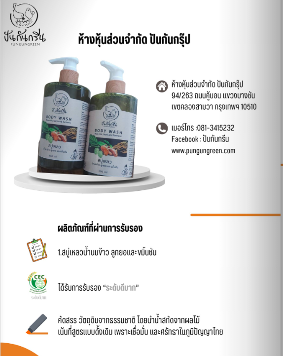ห้างหุ้นส่วนจำกัด ปันกันกรุ๊ปสบู่เหลวนํ้านมข้าว ลูกยอ และขมิ้นชันCEC14/25663 ธันวาคม 2566