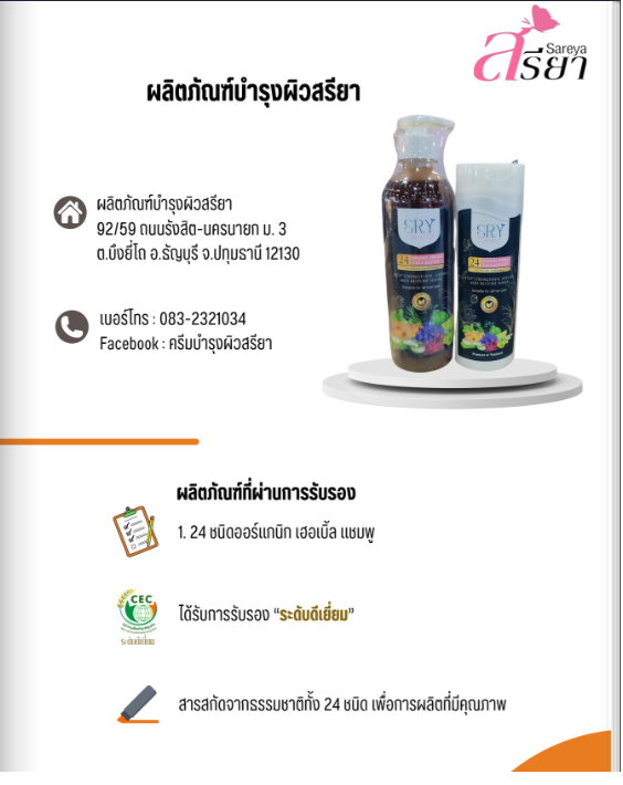 ผลิตภัณฑ์บำรุงผิวสรียา24 ออร์แกนิก เฮอเบิ้ล แชมพู (24 Organic Herbal Shampoo)CEC15/25663 ธันวาคม 2566