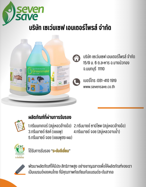 บริษัท เซเว่นเซฟ เอนเตอร์ไพรส์ จำกัดสบู่เหลวล้างมือกรีนเมกเกอร์CEC05/2566 (1)3 ธันวาคม 2566