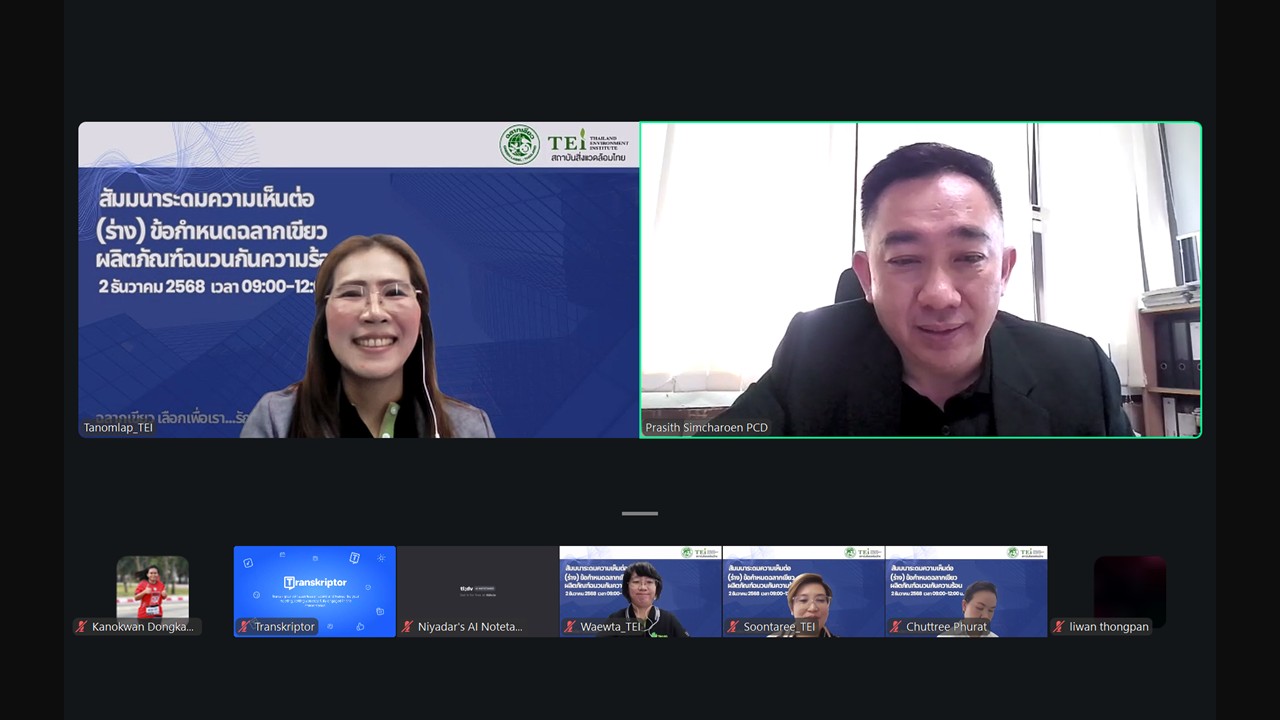 2 ธันวาคม 2568: 📝สัมมนาระดมความคิดเห็นต่อ (ร่าง) ข้อกำหนดฉลากเขียวสำหรับผลิตภัณฑ์ฉนวนกันความร้อน