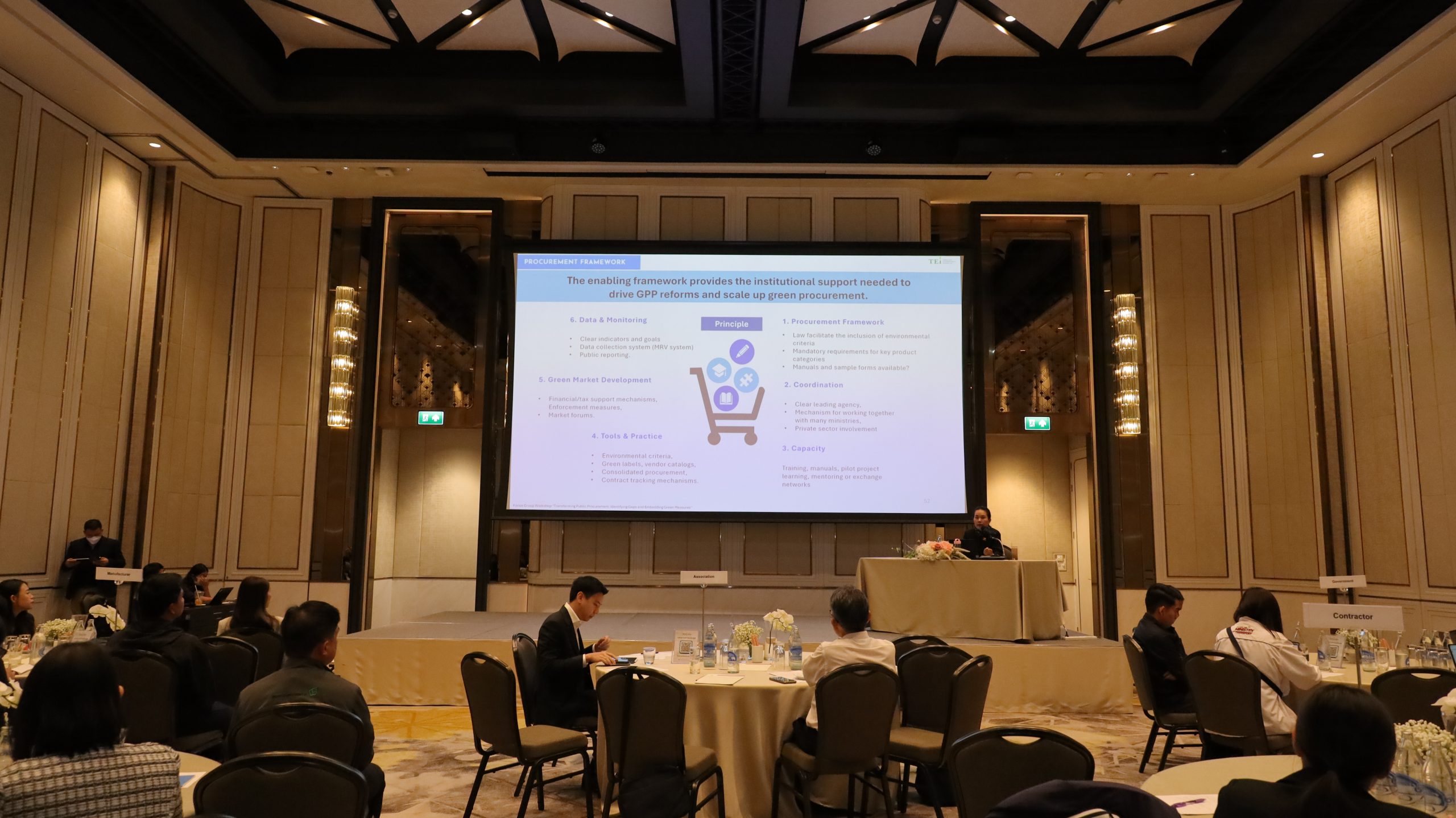 อีกทั้งยังเป็นเวทีแลกเปลี่ยนข้อคิดเห็นจากหน่วยงานผู้ใช้ ผู้จัดซื้อ และผู้เชี่ยวชาญ เพื่อร่วมกัน วิเคราะห์เส้นทางของสินค้าและบริการตั้งแต่การวางแผนจนถึงการติดตามผล พร้อมระบุ “จุดแทรกแซงที่เป็นไปได้” เพื่อเสริมความยั่งยืนในการดำเนินงาน ค้นหาช่องว่างใน TOR ปัจจุบัน และร่วมกันร่างแนวทางการปรับปรุงที่บูรณาการมิติสิ่งแวดล้อมอย่างเป็นระบบ